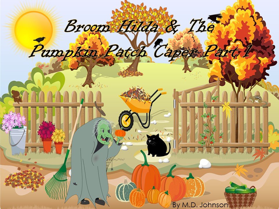 Broom Hilda & The Pumpkin Patch Caper Part 1. Discover what has happened to all the Farmerâs pumpkins, and if their Fall Festivals will go on as planned. Broom Hilda and her little black cat Elroy continue to defy stereotypes when they play detective in this book of mystery. This 38 page book is sure to enhance your childâs vocabulary, to include the following words: